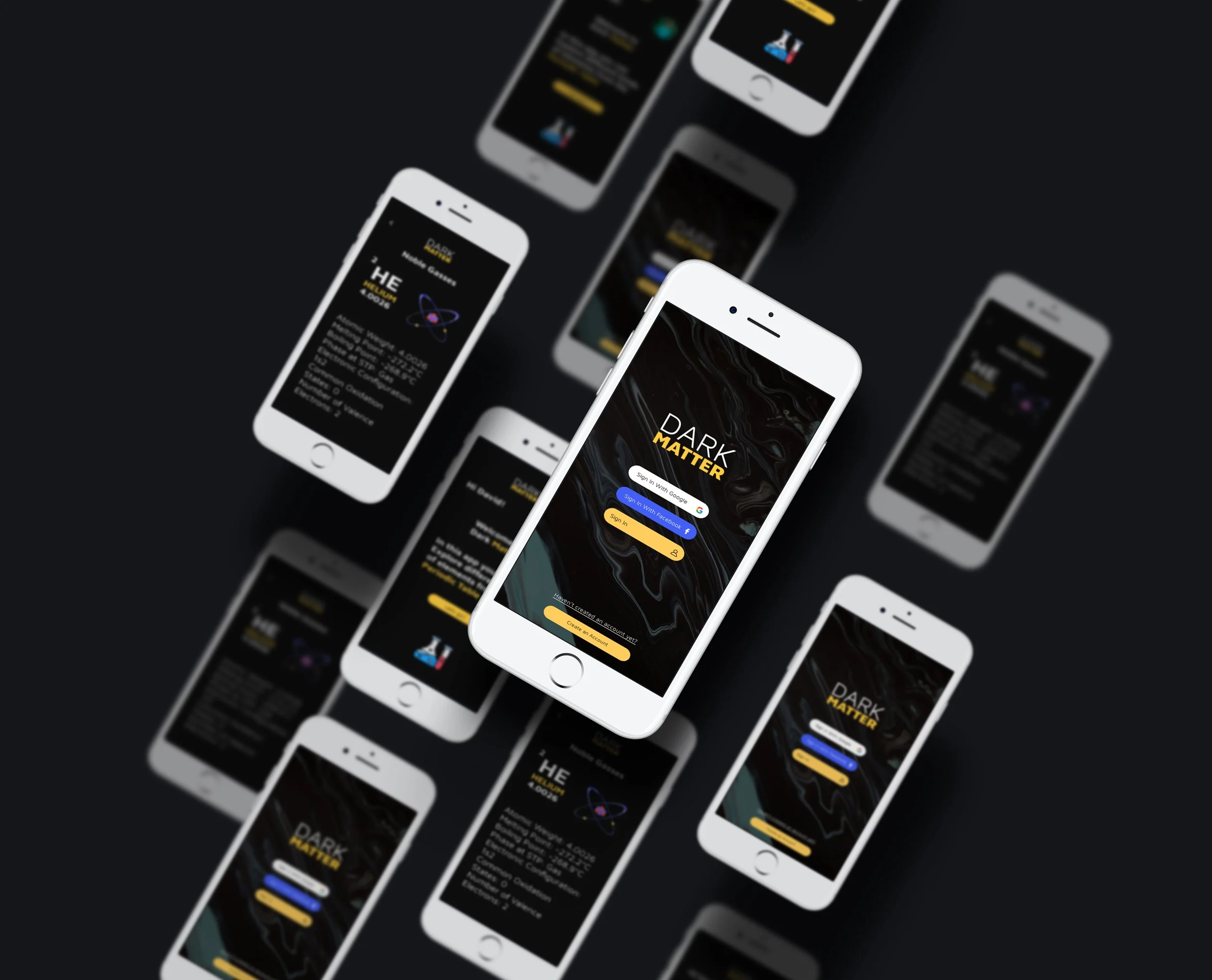 Dark matter Dark Matter is the second concept I developed. Initially, I began working on an app called Elemaze, but after evaluating the design and functionality, I felt it didn't meet my standards. I decided to revisit the drawing board, explore new concepts, and ultimately created Dark Matter.